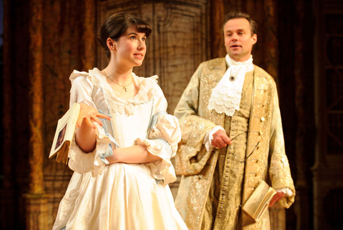We went to see The Rehearsal by Jean Anouilh for a second time at Chichester. I have added a SECOND VIEWING section to the original review. Surprisingly the theatre was not full. You still have a chance to see it this week. Edward Bennett’s role as Hero will surely be the best performance of 2015. Photo: Gabrielle Dempsey as Lucile, Jamie Glover as The Count.