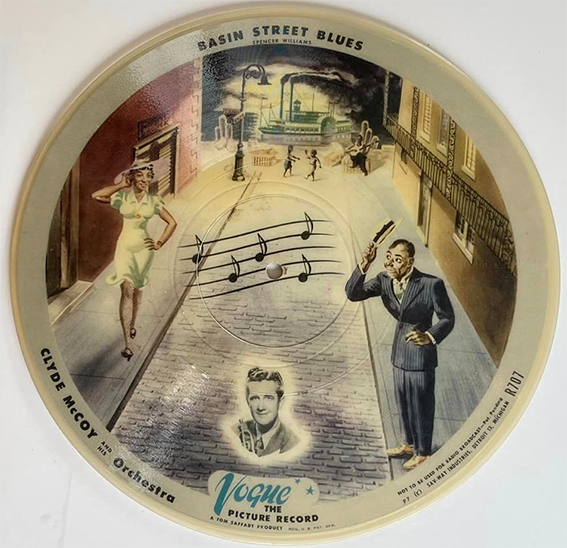 Another new page at AROUND AND AROUND. Vogue Picture Disc (FOLLOW LINK) was an American label that existed for just over a year in 1946 to 1947. They produced 74 picture discs, all running at 78 rpm, and a form of vinyl, not shellac. They had a wide range of artists and different illustrations on each side. They are highly collectible for the art, which is why they are in the Art of the LP section.