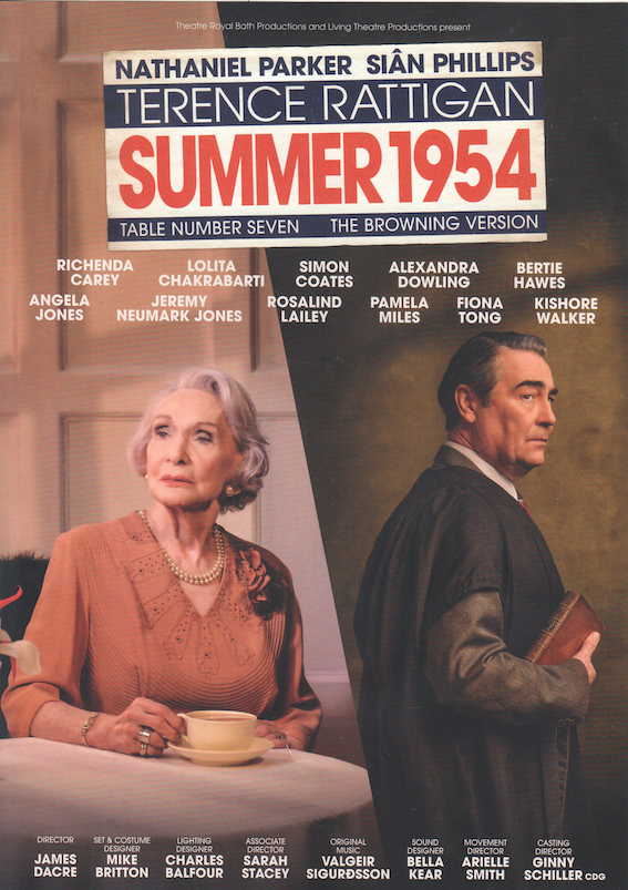 This is a new title for two paired one act Terence Rattigan plays: Table Number Seven (from Separate Tables) and The Browning Version. The review of SUMMER 1954 is here. (Follow link). It’s at Bath Theatre Royal at the start of a tour, so again, as with recent reviews, there is a chance of getting to see it. Great lead performances from Nathaniel Parker in both plays, and by Siân Phillips (at 91!) in Table Number Seven. No photos yet. They will be added when they appear.
