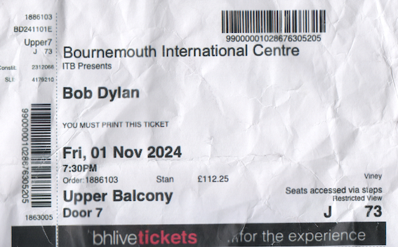 Up already. An instant review of Bob Dylan at Bournemouth International Centre on the Rough & Rowdy Ways Tour 2024 leg. FOLLOW THIS LINK.