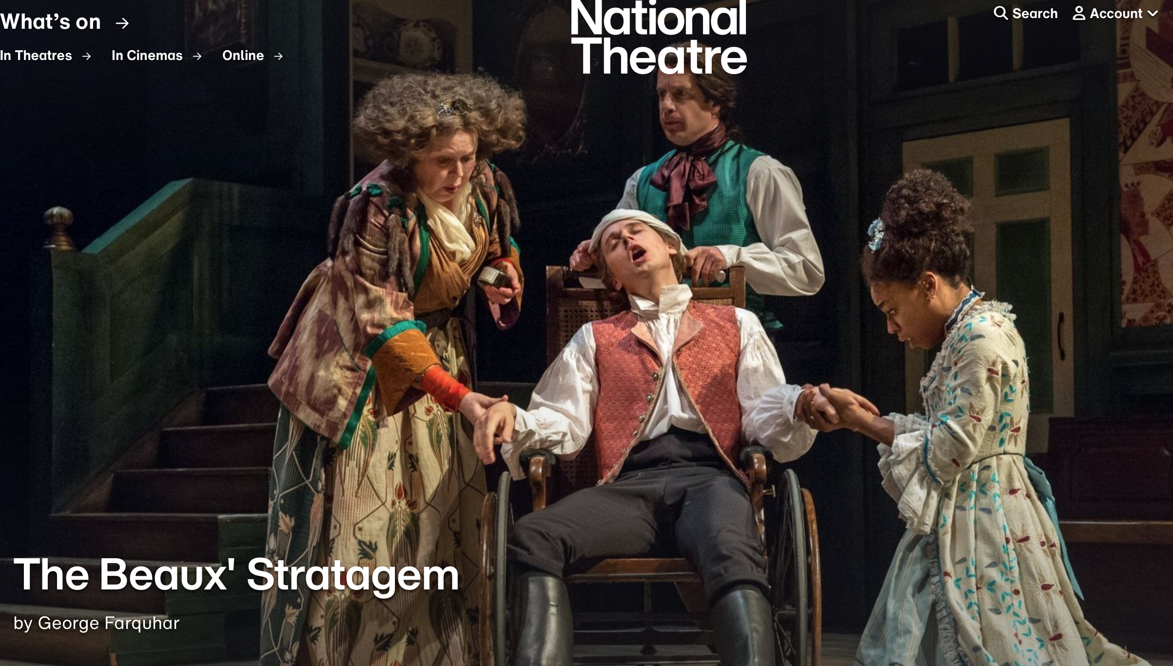 We saw this production of The Beaux Stratagem at the National Theatre in 2015 (follow link tro the review). We decided to revisit in 11 years on as it is available for streaming on NT AT Home, which is where you can see it right now. We had missed a lot of it because we had such awful seats right at the side in the theatre and the set was angled away from us. Rewatching was a chance to catch up on the bits we missed. I added a short note at the end of the 2015 review and updated the links. I like linking NT At Home because everyone has a chance to see it.