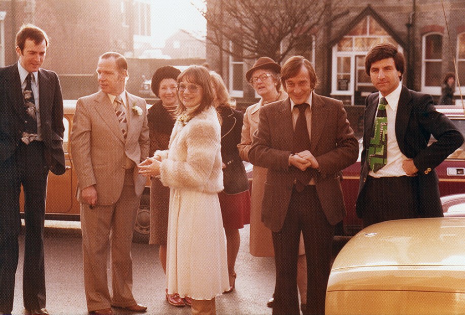 December 1977: Outside Poole Registry Office: L to R Nick Keeping, Karen’s father & mother, Karen, her sister, my mother, Bernie Hartley & Chris Owen. I took the photo, I assume.