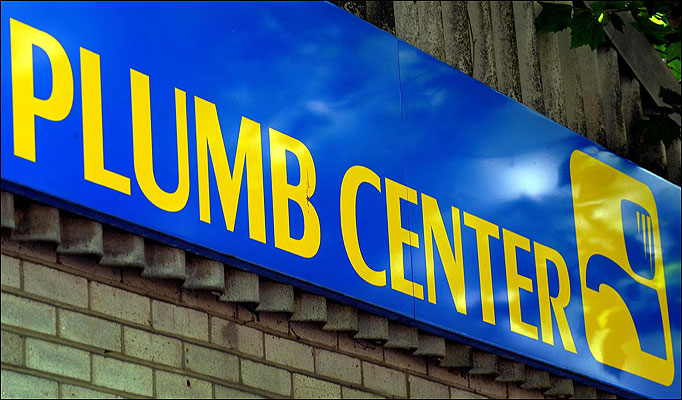 Plumb Center sign, Poole, UK