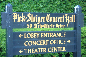 Theater Center sign at Nortwestern University, Evanston, Illinois