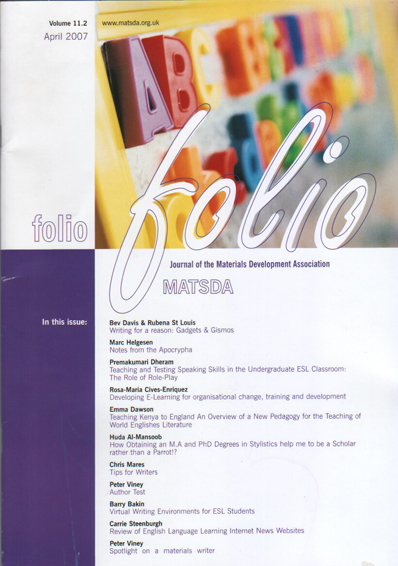 MATSDA is a non-profit making international association, based in Leeds, which was founded in 1993 by Brian Tomlinson to bring together researchers, publishers, writers and teachers to work together towards the development of high quality materials for the learning of languages. SPOTLIGHT is their journal. Peter was interviewed for the 2007 issue. Each Writer Spotlight includes an “Author test” by Dorothy Zemach, which I have included below the article.