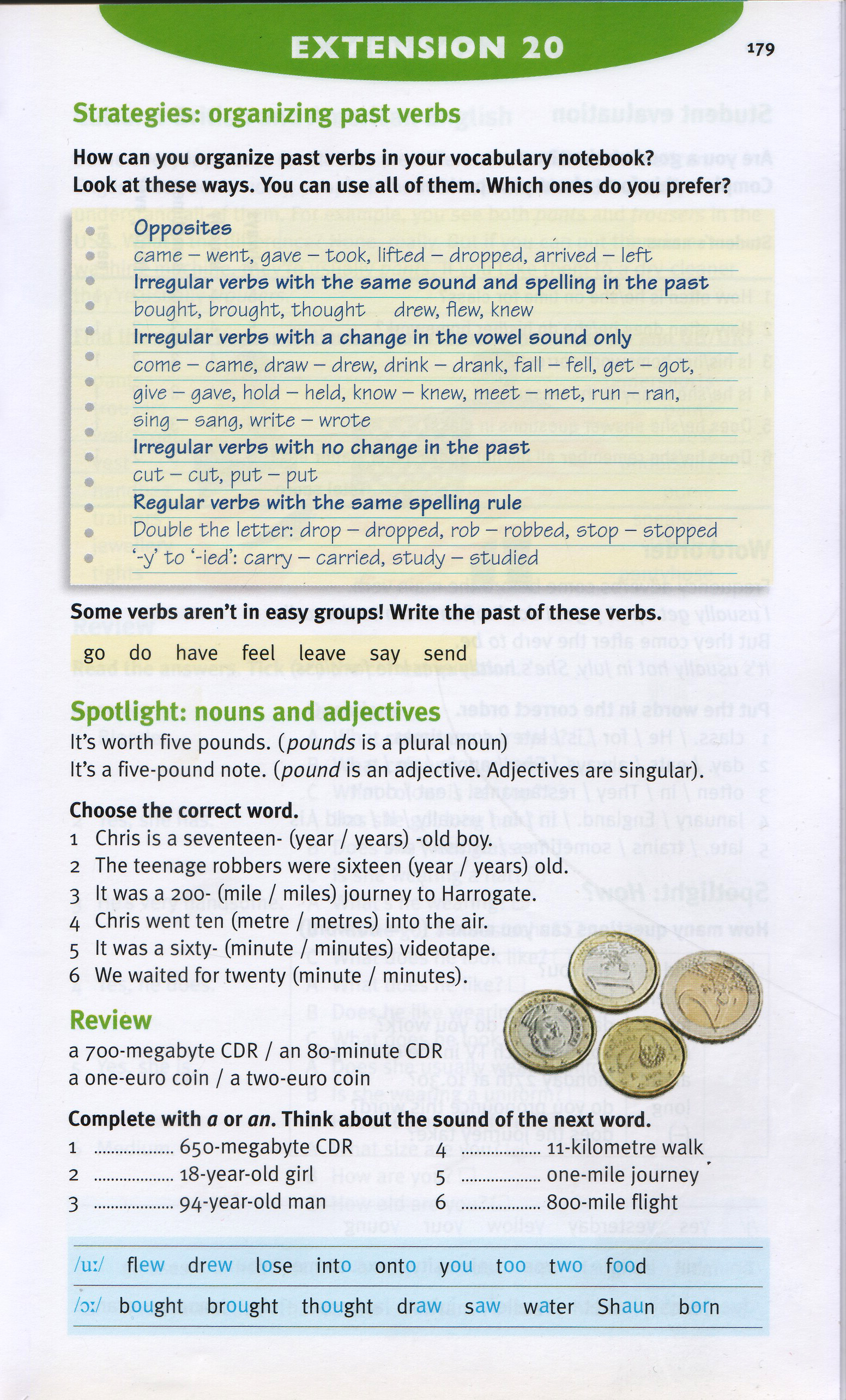 • All classes become “multi-level” classes within a few minutes. Some students will progress faster than others. It is useful to have access to some activities that are “harder” than the lesson for the faster ones and some “easier” for the ones progressing more slowly. It’s also useful to have some material at a tangent for times when the main book leaves you with spare time at the end of a lesson. For example, in the IN English series, every unit had an Extension at the back of the book. These contained three types of material, some faster, some slower, some at a tangent. Some focussed on learner training, some on vocabulary acquisition, some on role-play. There was a great variety of formats. There was also a short pronunciation focus activity using IPA, which we avoided in the main body of the book.