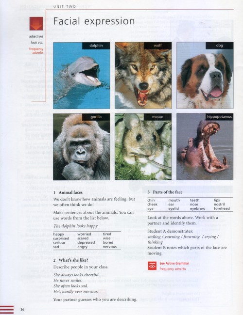 Handshake Student Book, Unit 2, Non-verbal Communication, section on Facial Expression (4th section out of ten sections)
