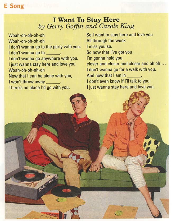 I Want To Stay Here (LINK to article and audio) (Carole King & Gerry Goffin, recorded by Steve & Eydie) Unit 7, want to do