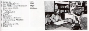 The one thing that does happen is that we use dialogue more than most courses (though less than Streamline did). I’ll be totally arrogant here and say that it’s because the experience of working on video so heavily has made Karen and I better dialogue writers than most! Dialogue still has major advantages in presenting memorable, flowing interchanges to students. Courses which avoid dialogue almost entirely (as some do) have difficulty in getting students to create longer interchanges which flow.
