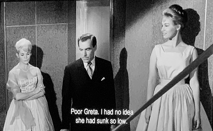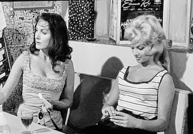 Nicole reminds Jennifer to attend her dad’s important business dinner. He wants to sell his City 2000 to Brazil (Mmm. It’s called Brasilia). As she leaves, Greta comes in. Greta is a stripper from Les Girls the club next door … a real French club name, which turns up three years later in Cliff Richard’s Summer Holiday. Greta greets Nicole by name, but Nicole cuts her dead.