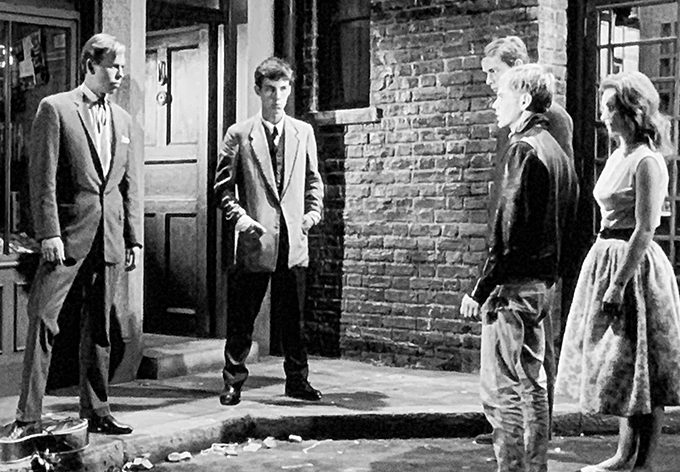 Film companies in the 50s and 60s were obsessed with seedy Soho. No wonder, in that the film distribution and management offices are right in the middle of Soho surrounded by the strip clubs and drinking dens. The executives passed them by … or went in … on a daily basis. Beat Girl has a direct line to The Small World of Sammy Lee and The Party’s Over in theme and location (both linked), and music. As in The Small World of Sammy Lee, the corner of Soho with the coffee bar and Les Girls strip club is a studio set. There is a brief real Soho shot at the end.