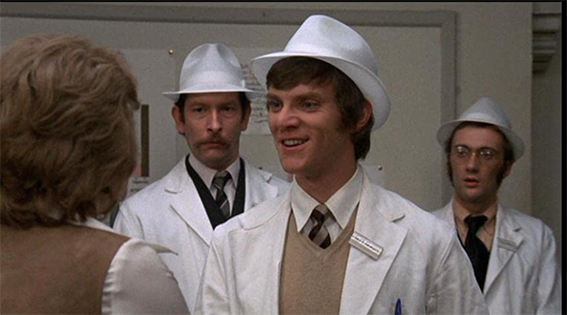 The central character played by McDowell, carries on from If …. as Mick Travis. The cast take multiple roles. Several of them had appeared in If … and they appear to reflect that in their new characters, so that Peter Jeffrey, the headmaster in If …. is always an authority figure, first the factory chairman then the prison governor. Geoffrey Chater, the militaristic chaplain in If … plays a bishop, then a vicar. Mona Washbourne, the matron in If … plays the hospital sister. Graham Crowden, the eccentric history master becomes the crazed scientist Professor Millar then the suicidal Professor Stewart. Ben Aris, the inept new teacher joins Travis as a salesman. Christine Noonan who was “the girl” in If …. appears twice, once on the coffee production line, and once in the strip club scene. Mary MacLeod, Mrs Kemp, the housemaster’s wife in If …. who likes to walk naked through empty dormitories, becomes the randy landlady Mrs Ball, then the breastfeeding vicar’s wife. Arthur Lowe, as Mr Kemp, the housemaster in if …. starts in a similar role in the factory then … well, see the plot summary.