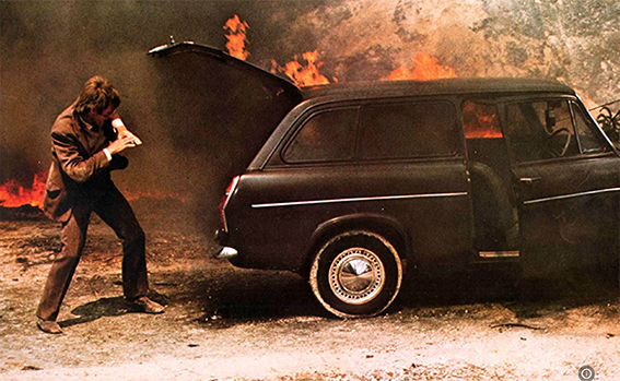 The van is a Commer with a camper conversion, so with only the band, not their gear. Hmm. The Commer was indeed the standard British group transport at one time. Once the Ford Transit arrived in 1965, the Commer with its narrow wheelbase and wonky handling fast fell out of favour. I can’t see any band, however poor and amateur, using it in 1973. They put Travis in the back seat where he finds Patricia (Helen Mirren) lying down. Yet another female attracted to Travis. I love the band members playing chess on the table in the van. Yeah, right.