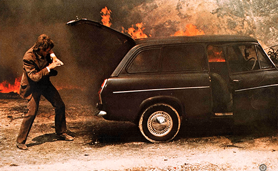 He is running up and down ash covered slopes with burning trees. The ash slope was Pasolini’s Theorem perhaps!