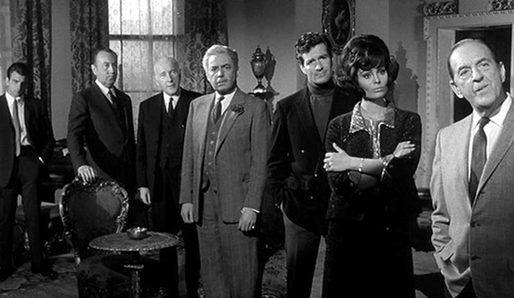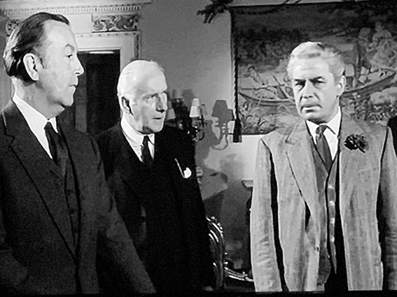 It’s only 90 minutes long, and a tad late for black and white, which gives it an air of B-feature. The cast are mainly character actors,. sticking to the characters that made them such. At one point I suspected the killing off was based on ‘weakest actors first’ as Fabian is the first to go. He gets to sing the rhyme at the piano (and told to stop that infernal noise) and takes another swig of his drink which has been laced with cyanide. His quiff was well past its Best Before date by 1965 and we weren’t sorry to see it go.