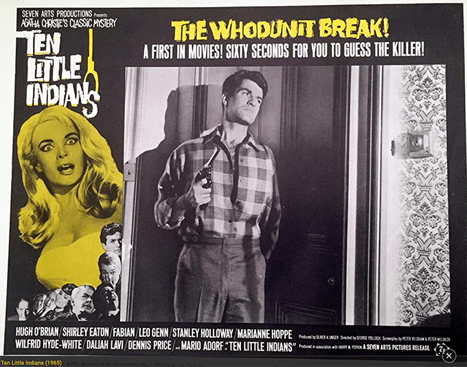 PAUL: Thanks for sharing Ten Little Indians. I was completely unaware of this 1965 black and white version. Some years back I wrote a 2000-word piece about Agatha Christie that mentions a great deal about Ten Little Indians/ And Then There Were None.
