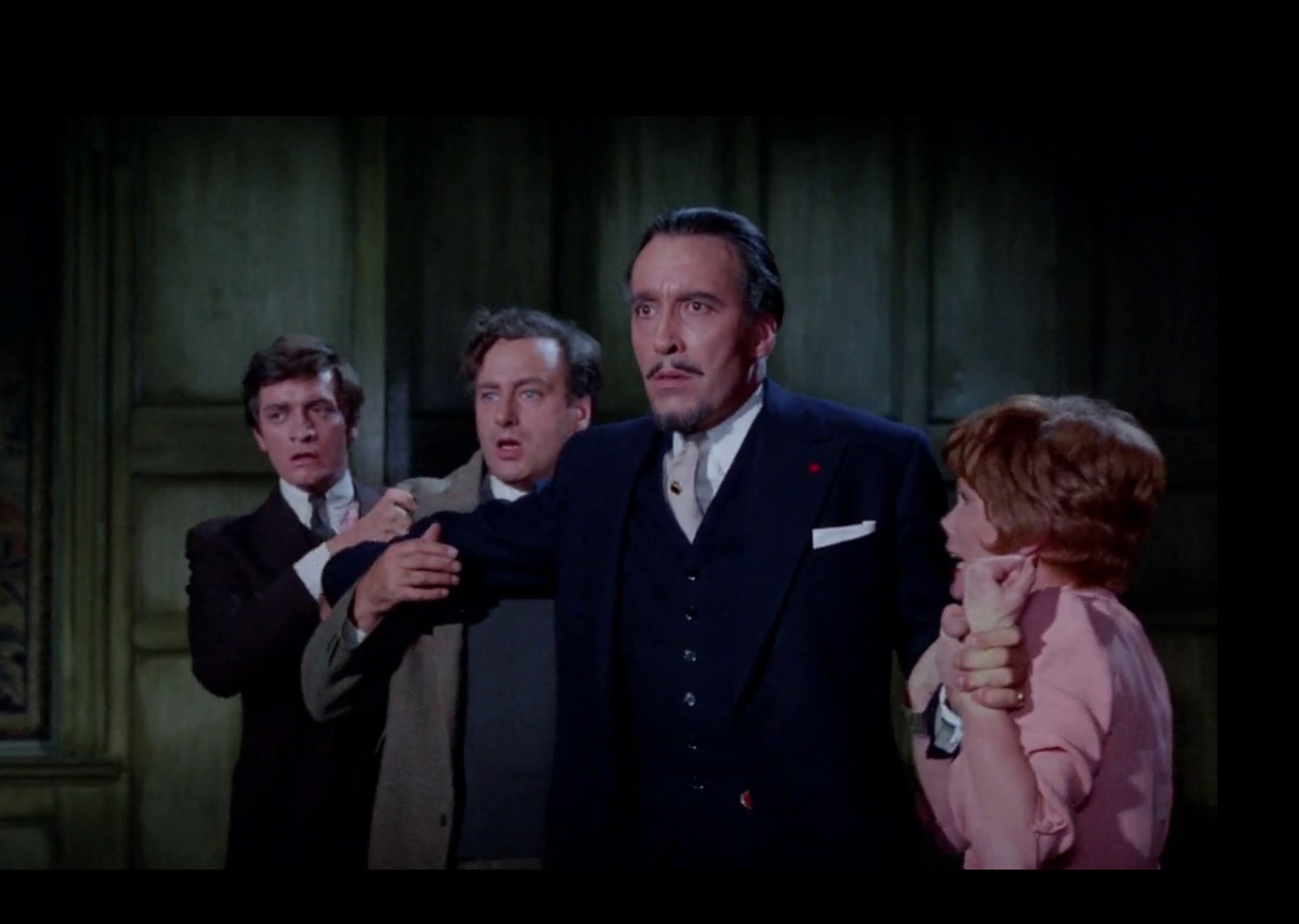L to R: Simon (Patrick Mower), Richard (Paul Eddington), the Duc (Christopher Lee), Marie (Sarah Lawson)