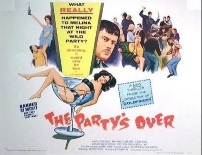 The Party’s Over was shelved by Rank in 1963 after it failed to pass the British Film Censors Board, and sat gathering dust until 1965, when an edited version scraped out, without any director or producer credits, which those involved had insisted were removed from the edited version. The film had lost a full eighteen minutes. It was still an X certificate. It crept out as quietly as wet flatulence in 1965, under the banner of a minor distributor, Monarch Films, and then only to the seedier sort of picture house as a “blue” picture. Rank had sold it on. Most towns had that kind of cinema. Ours was called The Continental Cinema, and was frequented by the dirty mac brigade. ‘Continental’ in those days indicated soft porn. They would have been disappointed by The Party’s Over because very little flesh is on display, no one effs and blinds. That’s not why it was banned.
