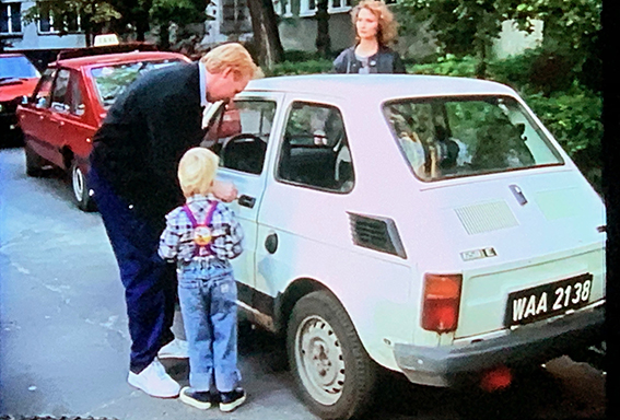 At the start, we see the little family with their Polski-Fiat 126 … Grete off to Krakow, Stephen to drive Tomasz to nursery school.