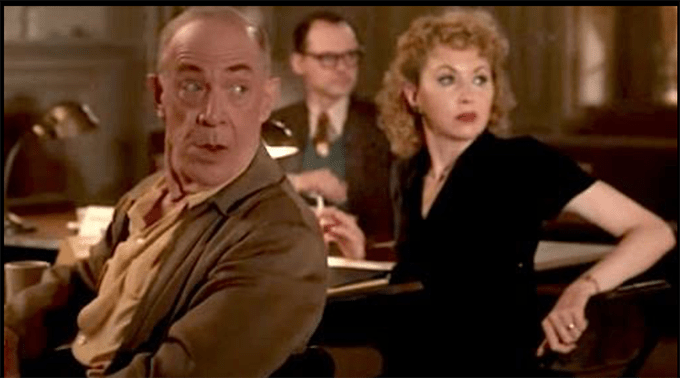 Then J.K. Simons as William Frawley (who played Fred Mertz) and Nina Arianda as Vivian Vance (who played Ethel Mertz)are outstanding support. Again, they’re not lookalikes in the colour sequence, but really conjure up Ethel and Fred in the black and white ones purporting to be the TV show.