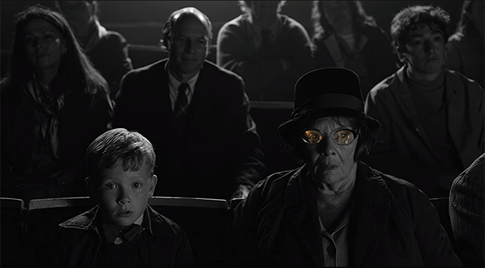 It’s technically brilliant. It’s black and white, but starts and ends with shots of Belfast today in colour. Old movies the kids watch on TV are black and white but when they go to the cinema to watch One Million Years BC and Chitty Chitty Bang Bang, extracts are seen as colour, as is the Christmas pantomime of A Christmas Carol. The movies references, especially The Man Who Shot Liberty Valance and High Noon are important.
