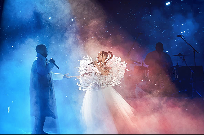 In the green room (waiting area) Dr Mindy and Kate meet Riley Bina (Ariana Grande) … a very funny cameo by Ariana, I’m fighting not to joke spoil here, and her performance on the morning show is even funnier. Late in the film, she performs ‘Don’t Look Up’ in a benefit concert, and that’s also a memorable pastiche.