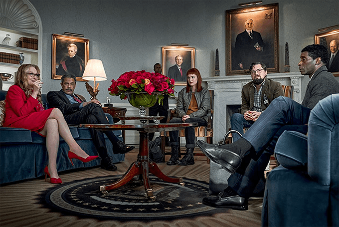 It is a supergroup line up. Four undisputed A listers … Leonardo DiCaprio, Jennifer Lawrence, Meryl Streep, Cate Blanchett. Add Britain’s best stage actor, Mark Rylance. Then pop superstar Ariane Grande teamed with Kid Cudi. Up and coming major star? Timothée Chalamet. Drop in the star of Yesterday, Himesh Patel. Surround them with major comic talent like Jonah Hill (incidentally, the brother of Beanie Feldstein who plays Monica Lewinsky in Impeachment) and Rob Perlman. Tyler Perry is in there. Put in Rob Morgan for the serious role.