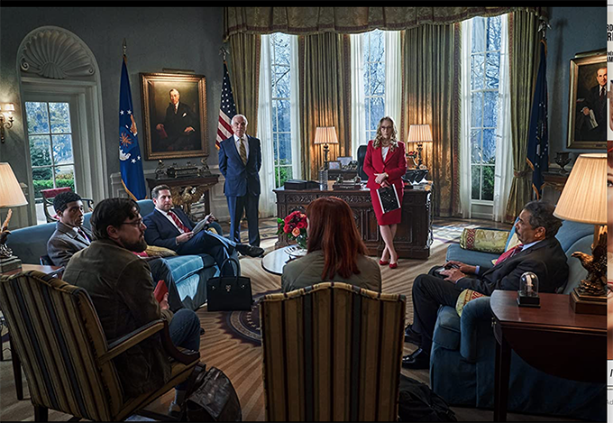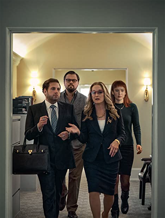 The story is about the political and media lack of reaction to the imminent danger. It rings true. In the face of danger, politicians wriggle, lie, then deny anything is happening at all … Climate change? Covid? Both work. The media, epitomised by Jack and Brie, anchors of the morning TV show The Daily Rip, want cheerful pap. The military are used as a patriotic sideshow distraction. Then as the politicians manipulate, the great American public prefer denial of the danger to confrontation. They seize on straws of hope (a mission to destroy the comet) then when all fails, prefer to simply chant the mantra ‘Don’t look up.’