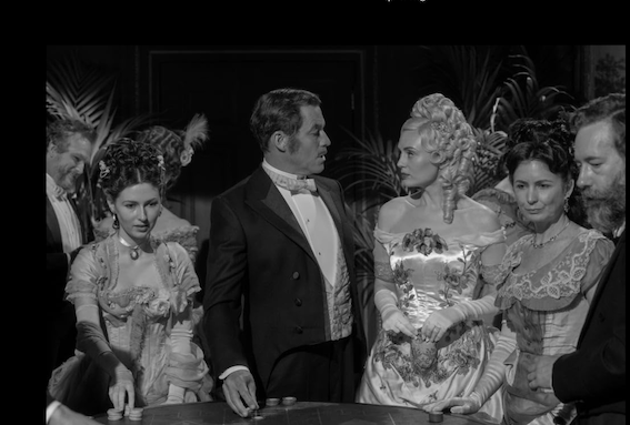 The plot is familiar. I was well ahead. Then, I’ve seen Babylon.They must transform The Gambler into a talkie by dubbing on dialogue to the footage they’ve already shot. Right, you’ve seen the issue, I expect. Silent film stock doesn’t have the running track on it for sound. Never mind, we’ll forget that along with the hot lights right under an extravagant 18th century ceiling. The dubbing is Lady Mary’s idea and none of the pros had thought of it. So Guy Dexter has a rich voice. No problem. Myrna Dalgleish has a squeaky Cockney voice. She is ludicrous as an aristocrat. Got it! RP wins! Lady Mary will read the lines and Myrna will mime them.