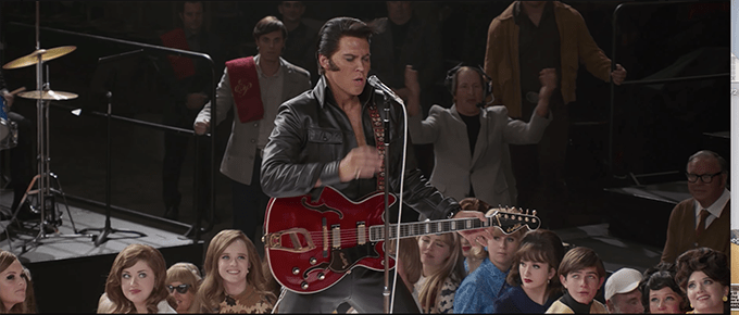It’s full of memorable performances. I tired of Tom Hanks’ Colonel shuffling around slot machines between his more interesting scenes, but he’s Tom Hanks. The good scenes are great. Austin Butler on-stage moves and his performances of the big numbers gives an award-winning performance. Suspicious Minds stands out. Baz Lurhmann’s direction, as ever, brings a vibrant film. Archive sequences are cunningly mixed in, using collage to equate film quality You can’t blow that old newsreel film up to a modern screen, but you can put them in split-screen collages.When Lurhmann gets to Vegas the big stage senes are huge … but that’s exactly what they were. I loved the shots of Elvis directing the band for his intro music.