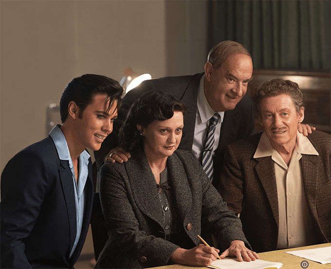 The soundtrack is complex. Sometimes it’s Elvis’s voice. Sometimes it’s Austin Butler’s voice. Sometimes they’re mixed within the same song. It’s Austin Butler for some big face-on production numbers. No one can sing exactly like Elvis, though plenty have made a career as Elvis imitators. I saw Scotty Moore and D.J. Fontana in Southampton, working with a Welsh band fronted by a very good Elvis imitator. Every time Scotty Moore did the guitar solo in Heartbreak Hotel the applause was deafening, whereupon he repeated the solo. He must have played it a dozen times. On which, we definitely don’t see enough of Scotty, D.J Fontana and Bill Black in the film. They get odd lines, but the relationship of the band in the early days was worth exploring.