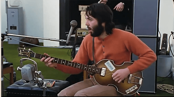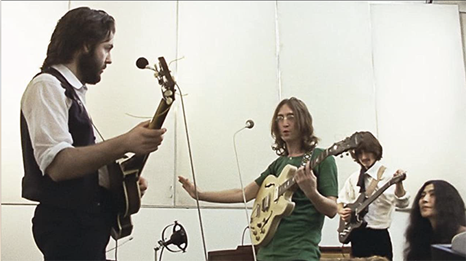The interest for me was seeing a Fender 6-string bass in the studio, which both George and John play on various numbers. The usual credits only refer to John on 6-string bass, but in the film George has a go too (and I thought does better). They discuss the issue of Paul needing to play piano live, and mention Billy Preston. Or Paul could play piano, and one could play bass. ‘We only need one guitar’ upsets both guitarists.