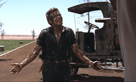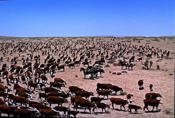 At the end Jett Rink, as a Texas oil baron, has huge JR symbols everywhere. This is not the film’s only influence on the TV series, Dallas.