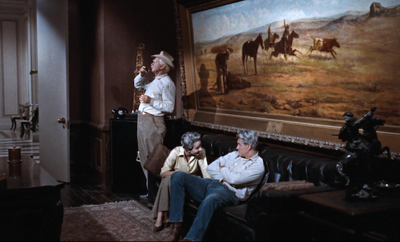 At the end Jett Rink, as a Texas oil baron, has huge JR symbols everywhere. This is not the film’s only influence on the TV series, Dallas.