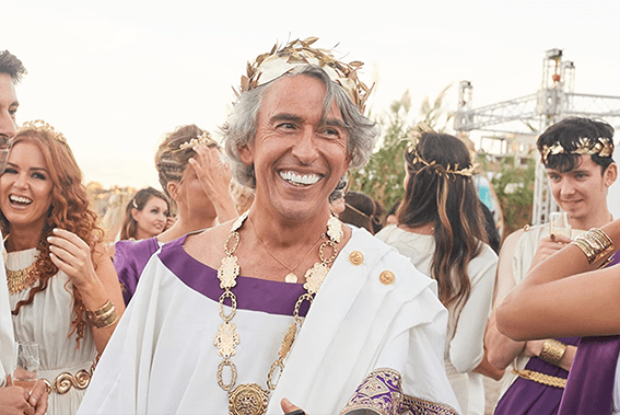 I believe we may have a different definition of ‘loosely based.’ Sir Richard McCreadie (Steve Coogan) does all of that, except his party is on Mykonos with a Gladiator themed plywood amphitheatre. Still dressed as Nero. He has the divorced wife who gets all the dividends, stays best friends, and smiles on his supermodel second ‘trophy wife.’ He takes over a department store chain. Many of his businesses fail after being stripped of assets.