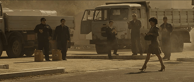 In the film, they meet in 1978. Patrizia works as an office manager for her father’s haulage company. Incidentally,her walk and hip wiggle past the wolf-whistling truck drivers channel Sophia Loren. Incredibly good.