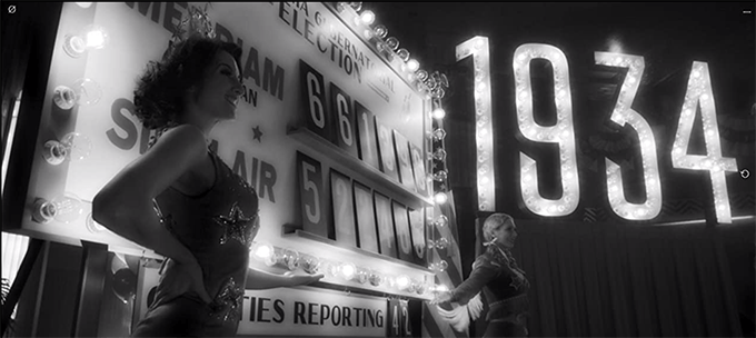 It’s filmed in Black & White and Fincer fortunately does not go that “film school” clever-clever route, but the cinematography is superb. On the other hand, full widescreen in crystal sharp black and white looks somehow odd. However, the marvellous scenes of the Hollywood lots join others like The Last Tycoon and Day of The Locust.
