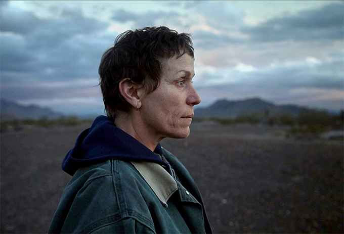 It’s innovative and also disconcerting in that it sits somewhere between a fiction film and a BBC Panorama documentary. Frances McDormand plays a character, Fern, who is omnipresent. There are no scenes without her. The rest revolves around her and the narrative line is tenuous. Mainly, people are real. McDormand has to urinate and defecate (explosively) on screen. To get the feel of reality, the director and principals lived in RVs (Recreational Vehicles) throughout making the film.