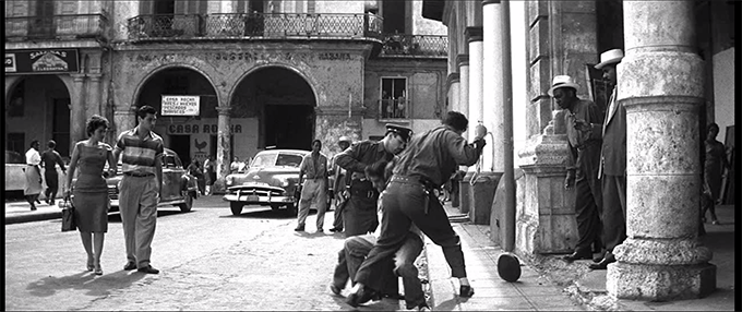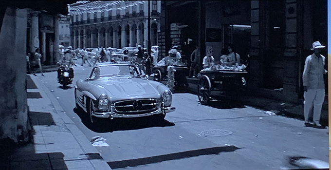 As well as the moody carefully-lit night scenes, we get the brightly lit gleaming daytime Cuba too. It’s a visual delight. I was particularly impressed by the depth and rich detail of the shots – you’re in a room but you see through the open balcony windows across the street to the balcony opposite, with things happening. The moody night shots with complex lighting obviously reference The Third Man.