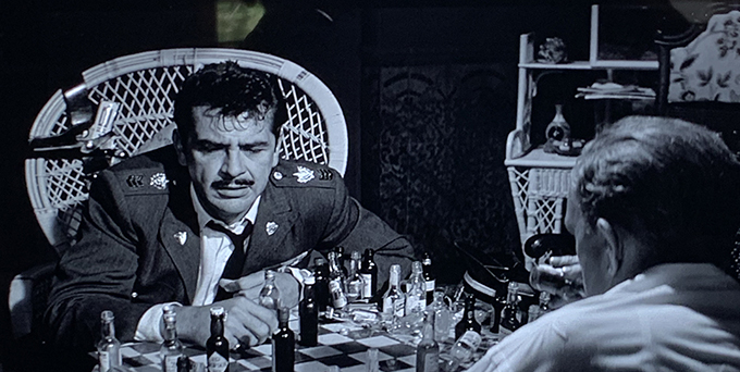 The plot: Jim Wormwold (Alec Guinness) is a vacuum cleaner salesman, though being British he unashamedly calls it ‘hoover’ with a small h. His daughter Milly (Jo Morrow) is fond of horses and expensive living and attends a Catholic school. She is being pursued by the nasty chief of police, Captain Segura (Ernie Kovacs).