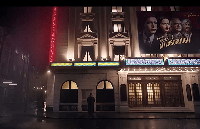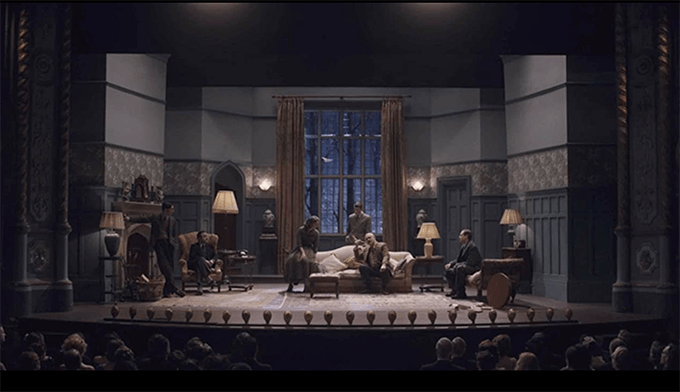 The film is set in 1953 at the celebration of the play’s 100th performance, and we see auditorium shots of the play (and a few lines). John Woolfe has bought the rights to produce a film version (which requires the play to have ended for six months). They have been sold / set up by the play’s impresario producer, Petula Spencer (Ruth Wilson).