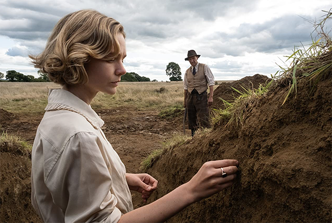 Carey Mulligan as Edith Pretty, Ralph Fiennres as Basil Brown