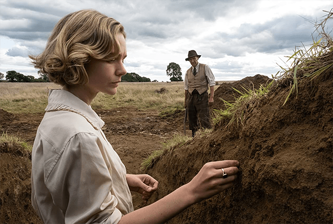 The Dig quietly subverts the comforts of victory, exposing them as a fleeting and superficial state of being. Nothing will free these souls from the inevitability of history. Achievements fade and entire lives are reduced to, as one character notes, fragments of broken china or a rusted watch wheel. There is a contemplative quality to Stone’s film, which cinematographer Mike Eley matches in dreamy, handheld camerawork that hovers around and follows characters lost in thought.