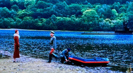 We go to Loch Ness … I thought, oh, no! Not back into the esoteric. But the thing jotting out of the loch is a submarine periscope. It’s the Germans! They’re after it. That solves the Loch Ness monster then. It’s German submarine activity. The Germans say they’ve come from the Atlantic. Wrong side. You can get to the sea from Loch Ness, but it’s the North Sea and you’d have to navigate a river and the Caledonian canal and exit through Inverness. Submarines and Loch Ness? That’s actually a Scooby Doo film. It’s an odd inspiration as it’s a truly dire Scooby Doo film.