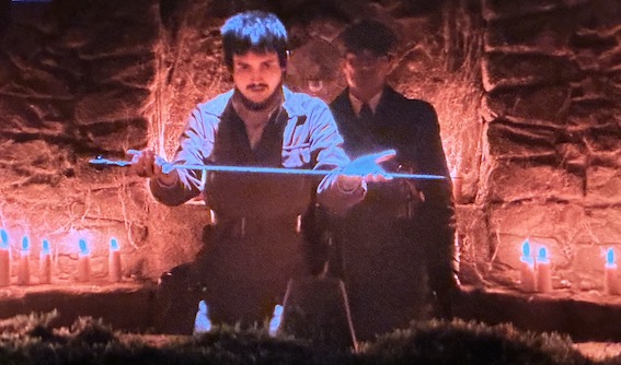 Tommy has the sword and placed it in a stone. (Was having Timmy and Tommy the best idea for names) OK, we’re now into Arthurian legend. Excalibur is drawn from the stone by Julian and George.