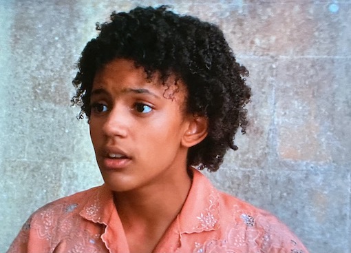 George is suitably grumpy and feisty but the script underplays her desire to be thought of as a boy, except for one line. It may be best because she certainly looks over sixteen, and if appearing as a boy, it would have to be a boy with gynecomastia (breast enlargement). It’s odd as a ‘trans’ George would be fashionable. She does not look 1939 in any possible way.