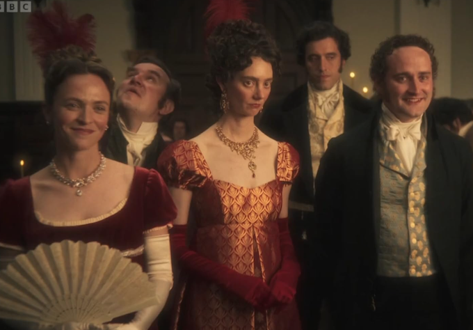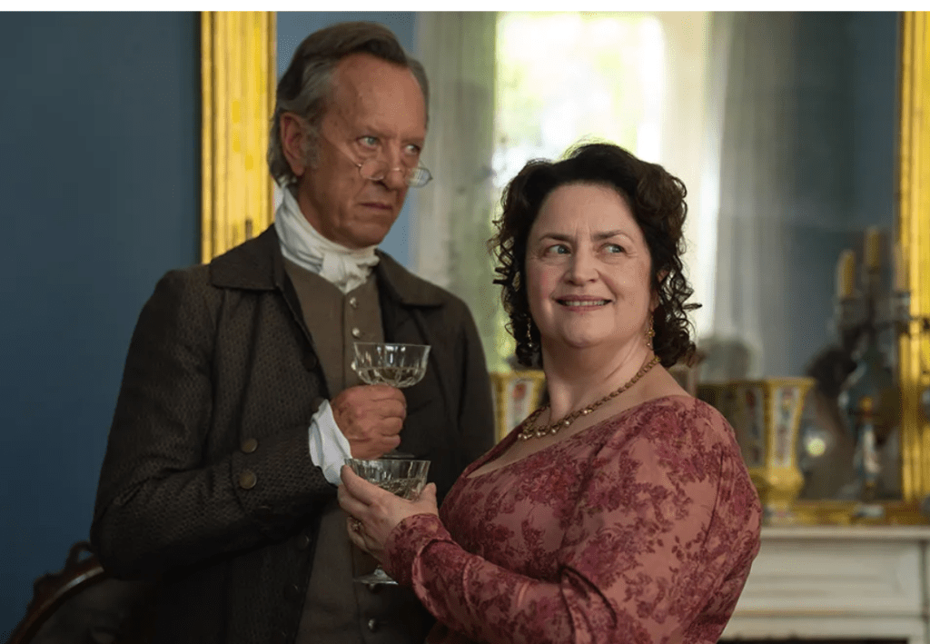 Richard E. Grant as Mr Bennett only lasts two episodes but grabs attention while he’s there. Indira Varma is the aunt, Mrs Gardiner, who invites Mary to London to be a governess. There she meets Tom Hayward, who is affianced to Anne Baxter. She also meets the charismatic Mr Ryder. They will be the competing love interest.