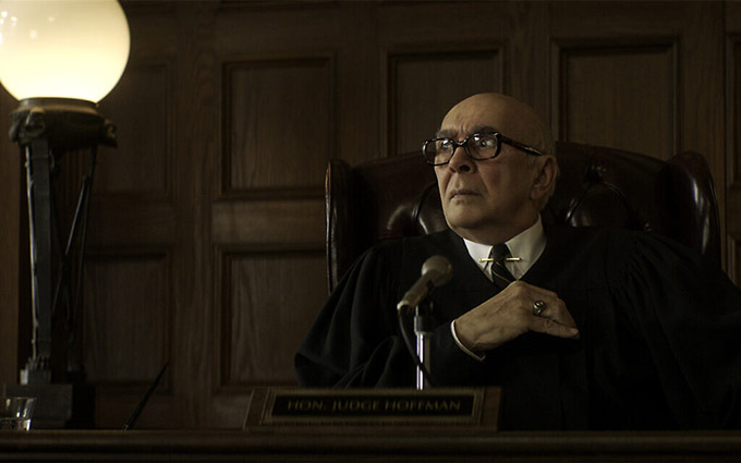 Then we have the two US Attorney Generals, Michael Keaton as Johnson’s appointment, Ramsey Clark, and John Doman as John Mitchell. It’s a true story so no giveaways, but Kunstler’s breakthrough (we thought) was subpoenaing Clark to testify the Johnson administration’s investigation found (a) no conspiracy and (b) the police started the violence. Watch to see how far that one runs.