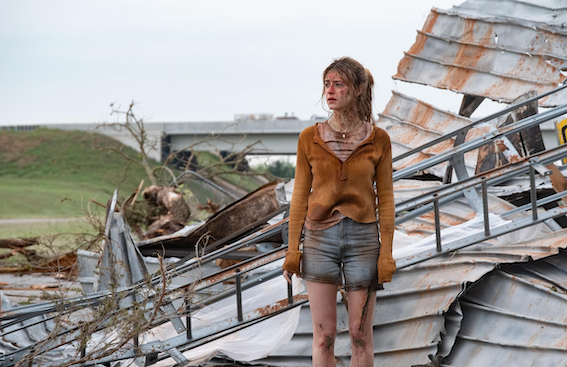 Still we were watching Twisters not Wolverine, The first fifteen minutes sets the story. Kate is a student meteorologist and is on a project with her university student friends, Praveen, Addy, Javi and her boyfriend and partner, Jeb. They are testing Kate’s idea that releasing a load of chemicals (sodium polyacrylate, so IMDB tells me) into a tornado will break it up. It fails disastrously. The silver foil test balls with the chemicals fly 70,000 feet up. Twice the height of a plane. Really? Are tornados that tall? Well, it was a big one. Kate is traumatised by the disaster.