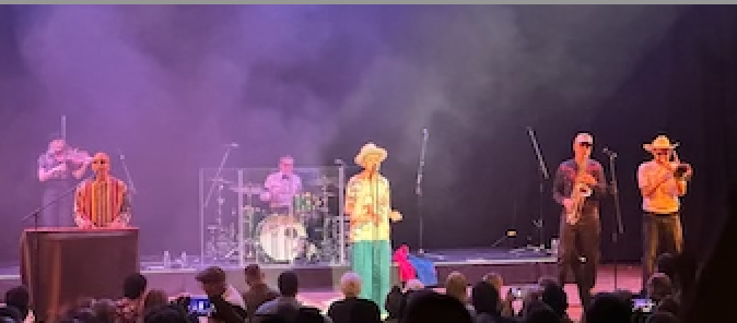 Dexys always had an intrinsically crowded sound … I was listening to Geno driving home, and the original has the same forward loud drum sound, murky bass and piercing horns, just as tonight. BUT I would have reduced the drum volume a lot. The keyboards are great when doing keyboard / piano sounds, but I really loathe that dull bass keyboard substitute sound he employs. For God’s Sake, employ a proper bass guitarist as well, I wanted to shout. I also wanted to say, find the guy who got Leonard Cohen’s totally clear and coherent mic sound and show Dexys’ crew how to get it. I want to hear every word Kevin Rowland says in the songs, and I was straining in the dialogues with Sean and missing a lot of it. That was even when they took out the drums and keyboard bass, and just had piano sound on keys and a little violin and trombone.